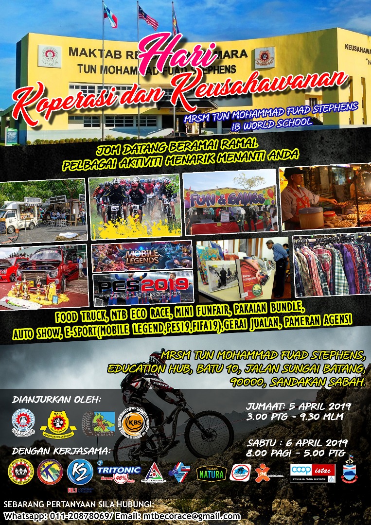 CoopISTAC Hari Koperasi dan Keusahawanan admin / 5 April 2019 Tempat MRSM TUN MOHAMMAD FUAD STEPHENS, EDUCATION HUB, BATU 10, JALAN SUNGI BATANG, 90000 SANDAKAN SABAH. Tarikh 5 April 2019 - 6 April 2019 Kongsikan di:TwitterFacebookGoogle+